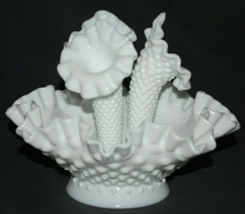 Title (ebay affiliate link): Vintage Fenton Glass White Milk Glass Hobnail 4-pc Miniature 7" Epergne Vase
