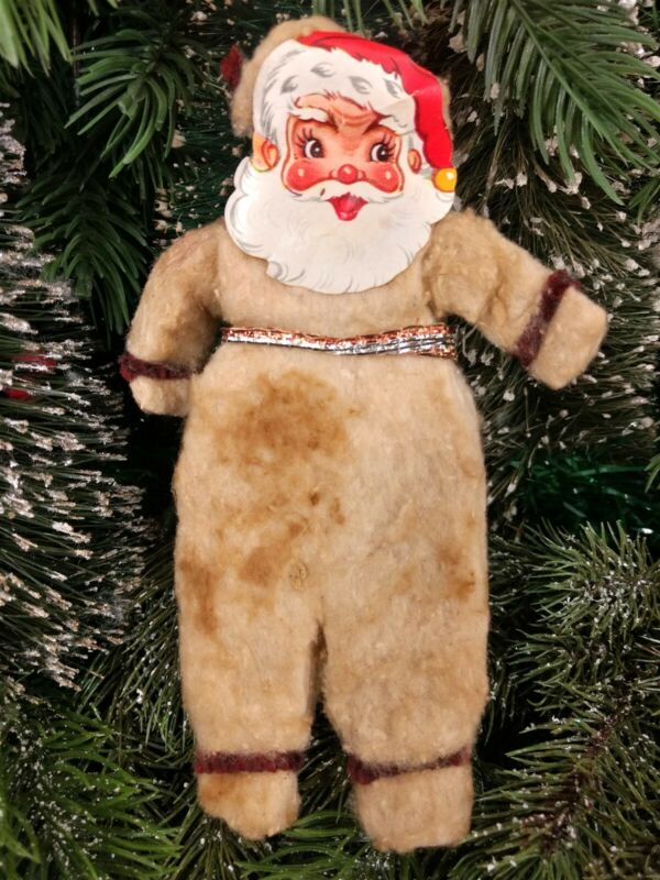 Vtg 1940s WW2 WAR-ERA Home-Front Cotton Batting Scrap Face SANTA Xmas Ornament