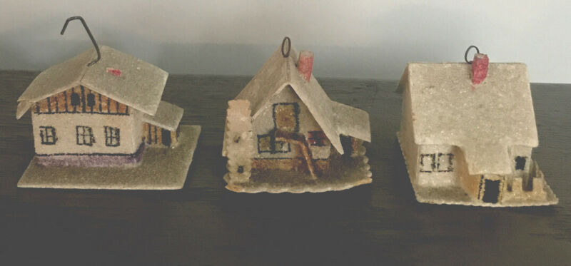 Title (ebay affiliate link): Vintage Old Mica Covered Cardboard Christmas Putz Houses (3) Made in Czech
