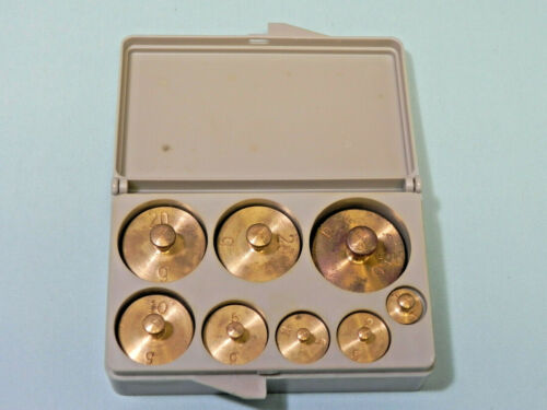 Title (ebay affiliate link): VTG Brass Scale Weights Calibration Gold .1 Gram Through 50 Grams Vintage