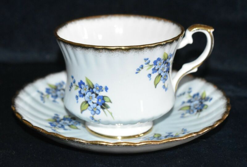 vintage cup & saucer Gladstone bone china England blue forget-me-nots gold trim