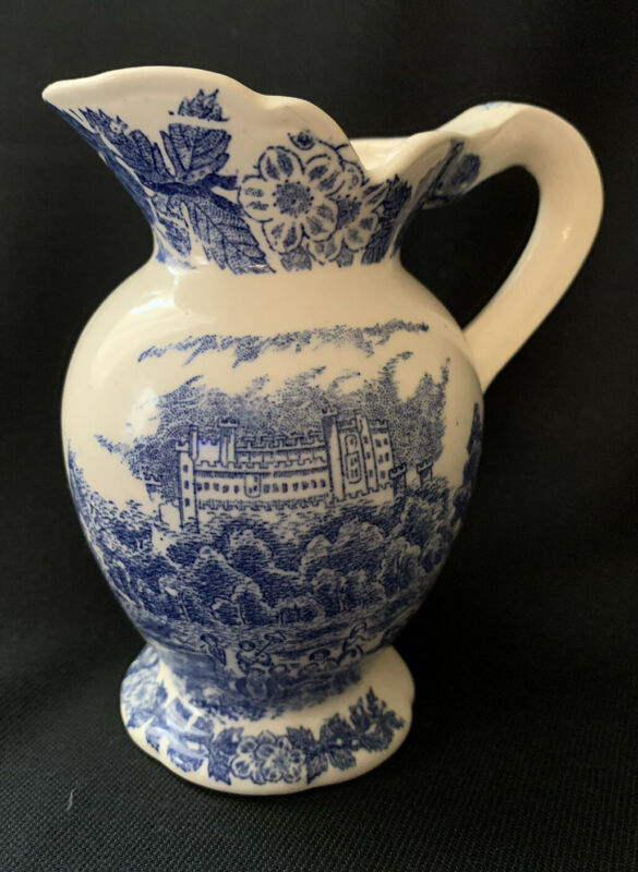 Lovely VINTAGE BLUE & WHITE TRANSFERWARE PITCHER Unmarked