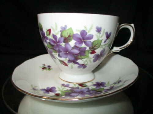 CUP SAUCER QUEEN ANNE BUNCHES OF PURPLE VIOLETS