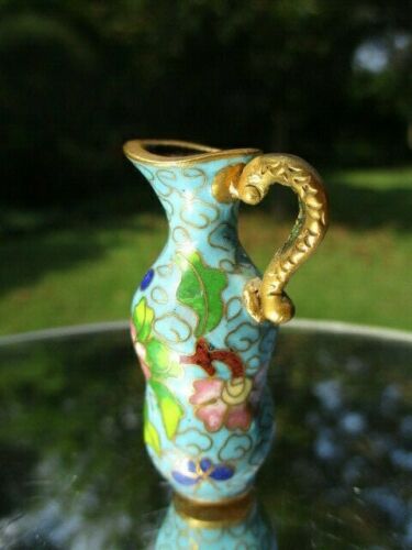 DOLL HOUSE MINIATURE CLOISONNE URN PITCHER JUG TURQUOISE BLUE FIELD 1.75"