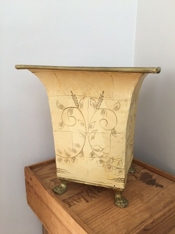 10â€Hand Painted Tole Wastebasket Bin Container & Urn Planter