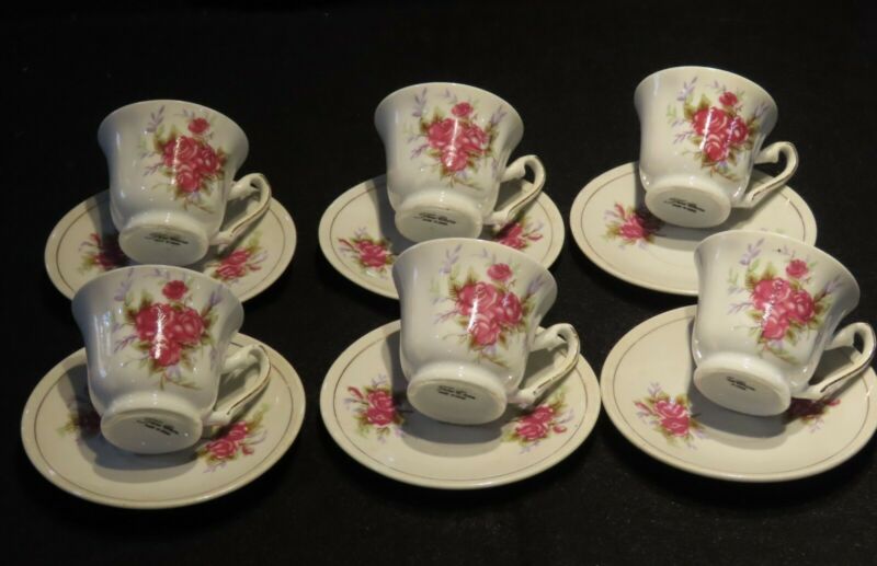 Title (ebay affiliate link): Tea cup & Saucer-Set of 6 Fine China Japan Bright Pink Roses very good condition