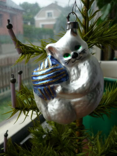 VTG.GLASS BEADED CAT CHRISTMAS TREE ORNAMENT