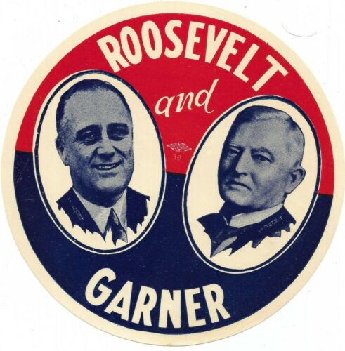 FRANKLIN ROOSEVELT, GARNER UNUSUAL POLITICAL CAMPAIGN STICKER
