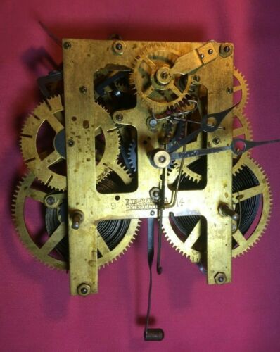 ANTIQUE E. INGRAHAM 8-DAY TIME & STRIKE CLOCK MOVEMENT GOOD RUNNER & STRIKER