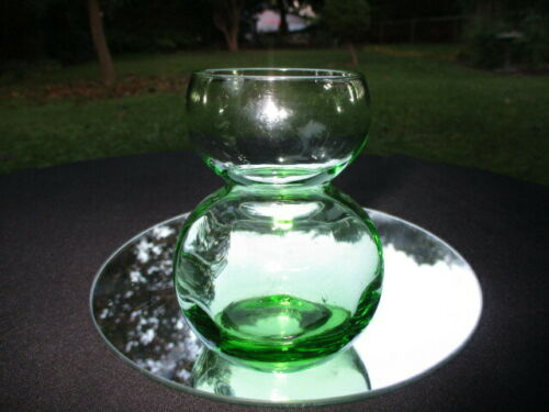 EMERALD GREEN GLASS GOURDE SHAPE BULB FORCING VASE SILL SITTER 4"