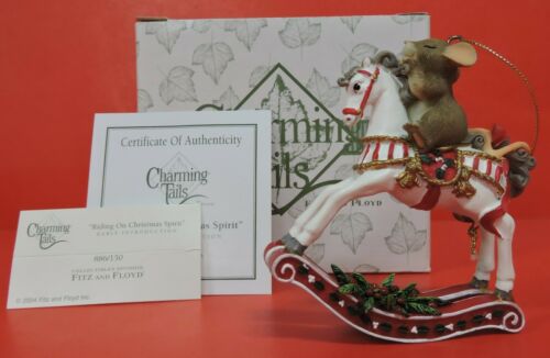 FITZ & FLOYD CHARMING TAILS RIDING ON CHRISTMAS SPIRIT ORNAMENT FIGURINE 886/150