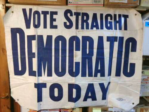 Title (ebay affiliate link): Vintage 36" x 48" "Vote Straight Democratic Today" Cloth Banner!