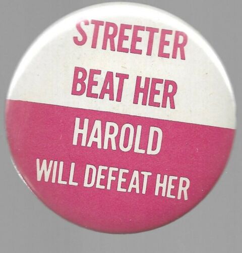 Title (ebay affiliate link): STEETER BEAT HER, HAROLD WASHINGTON WILL DEFEAT HER CHICAGO POLITICAL PIN