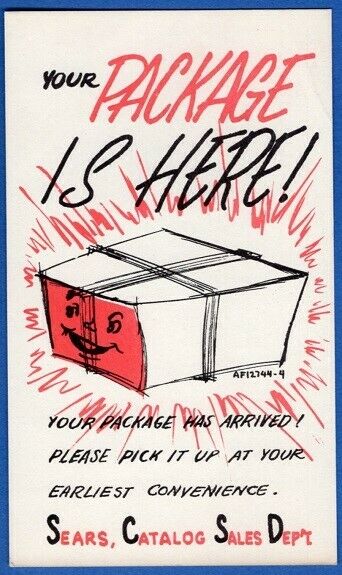 Title (ebay affiliate link): Your Package Is Here, U.S. 4 Cent Postal Card From Sears Catalog Sales Dept.