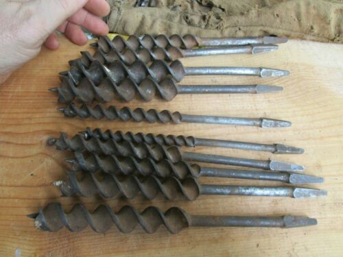 10 auger, wood drill bits; ''RUSSEL JENNINGS'' & ''R. JENNINGS MFG CO, CAST STEEL''