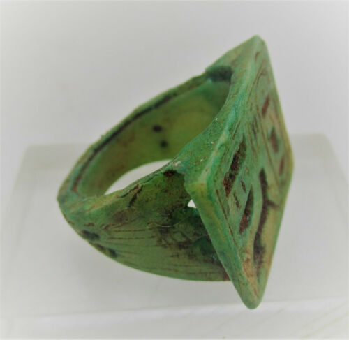 Title (ebay affiliate link): CIRCA 500 BCE ANCIENT EGYPTIAN GLAZED FAIENCE RING WITH HEIROGLYPHS ON BEZEL