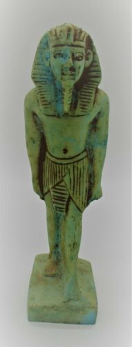 Title (ebay affiliate link): ANCIENT EGYPTIAN GLAZED FAIENCE PHAROAH FIGURINE CIRCA 300 BCE