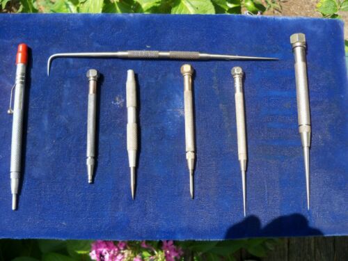 7 Vtg. Machinist Scribers, Awls, Picks. L.S.STARRETT, GENERAL HARDWARE, M.F.CO.