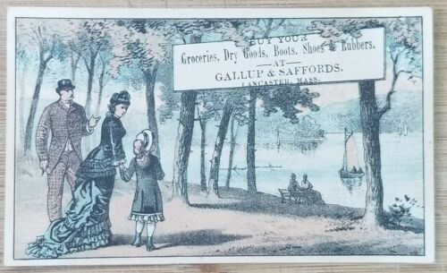 Victorian Trade Card Gallup Saffords Lancaster Mass Groceries Dry Goods Boats