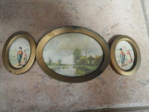 ANTIQUE VICTORIAN TRIPLE METAL PICKTURE FRAME WITH HOLLAND SCENE PRINTS