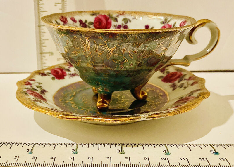 Title (ebay affiliate link): Vintage Napco Hand Painted 3 Footed Teacup & Saucer Plus 2 Pink Cordial Glasses