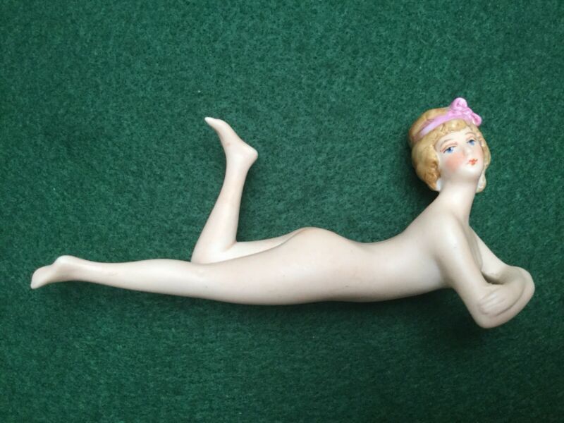 Title (ebay affiliate link): Antique Bathing Beauty Bisque Nude lady marked GERMANY exquisite figurine Saucy