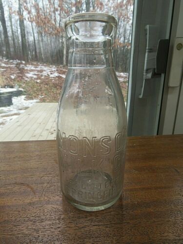 Title (ebay affiliate link): Milk Bottle Quart Springfield MA Monson Vintage 9 1/4" Clear Glass CW3