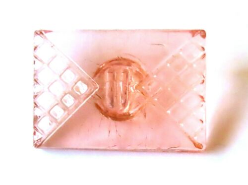 STELLAR 1930''S ART DECO TRANSPARENT PINK DEPRESSION GLASS BUTTON ~ 7/8" LONG