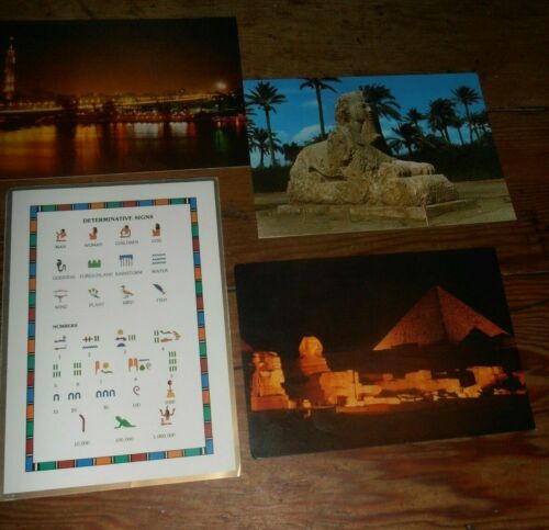 Egyptian postcards 3 blank,1 posted: Cairo, Giza, Sphinx, good condition, colour