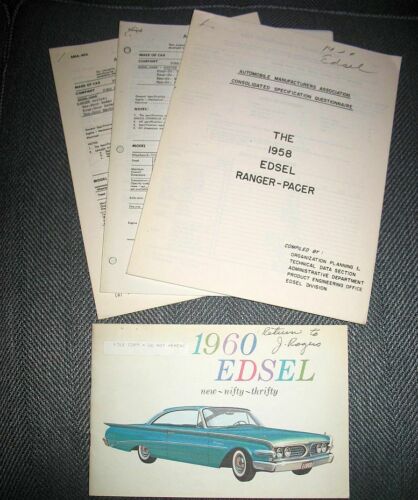 Title (ebay affiliate link): HTF Auto Mfgr Assoc Factory Specifications 1958 59 60 EDSEL + Dealer Brochure