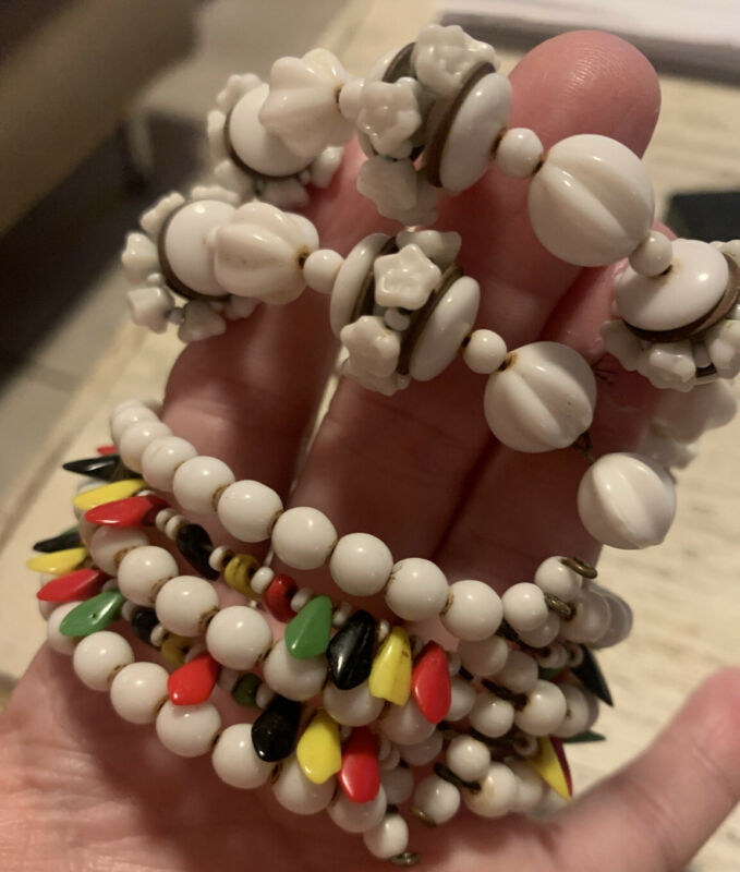 Title (ebay affiliate link): lot of 2 VINTAGE White MILK GLASS COIL Beaded bead Wide CUFF BRACELET