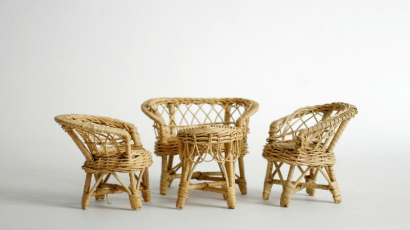 Title (ebay affiliate link): Vintage Barbie Size Doll Wicker Furniture Set Loveseat, 2 Chairs & Table 1:6