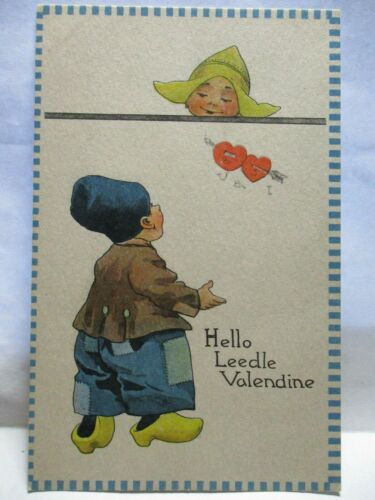 1910 POSTCARD DUTCH COUPLE, HELLO LEEDLE VALENDINE