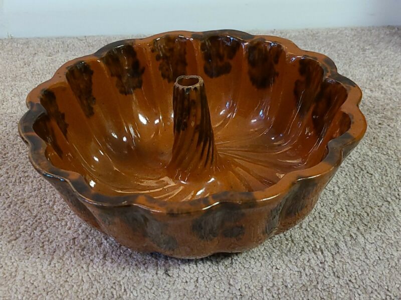 Title (ebay affiliate link): Vintage Redware Pottery Bundt Pan With Chips Exact Age Unknown