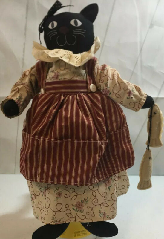 Title (ebay affiliate link): Primitive Black Cat Ragdoll Dress Fish Calico Folk Art Decor Vintage D1