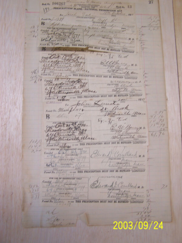 Vintage page of Prohibition Prescription Whisky Pharmacy Doctor Rx