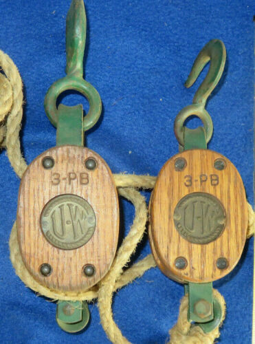 Title (ebay affiliate link): 2 Vintage U W Wood & Metal Pulleys and Rope / 3 - PB