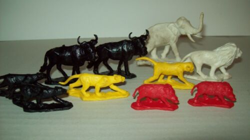 Lot of twelve original vintage multi colored Auburn rubber Jungle animals