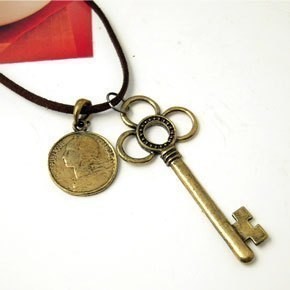 Title (ebay affiliate link): Vintage Bronze Coin Long Key Sweater Chain Necklace