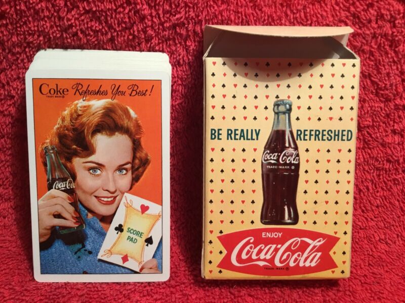 Title (ebay affiliate link): 1961 Fishtail Logo Coca Cola Playing Cards - Girl w/ Bridge Scoring Pad