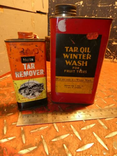 Title (ebay affiliate link): TWO VINTAGE TAR OIL CAN AUTOMOBILIA PETROLANA ADVERTISING