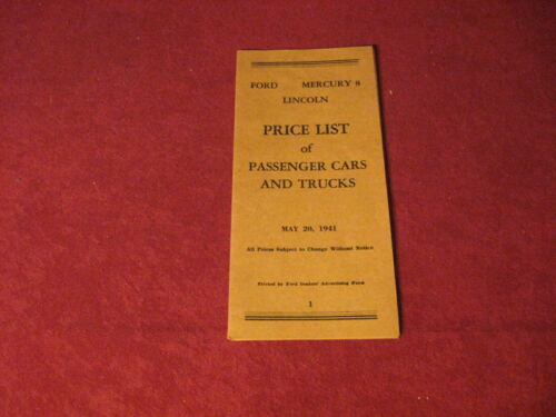 Title (ebay affiliate link): 1941 Ford Lincoln Mercury Price Sales Brochure Booklet Catalog Original Old Book
