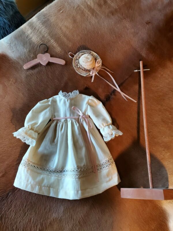 Title (ebay affiliate link): Antique Style Dress & Hat for your Antique Doll with stand and hanger 9" tall
