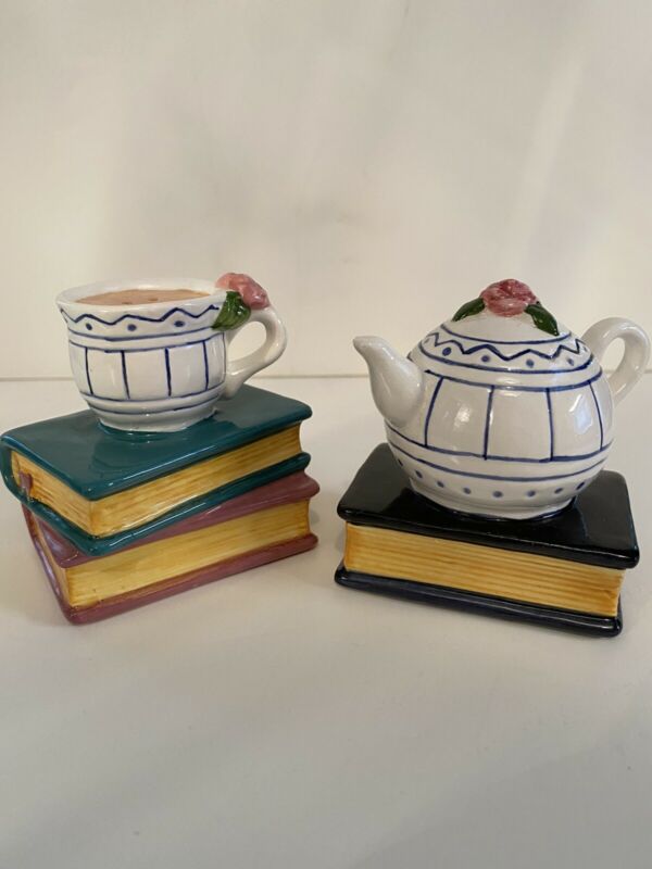Title (ebay affiliate link): Vintage Clay Art Teacup And Teapot On Books Salt And Pepper Shakers