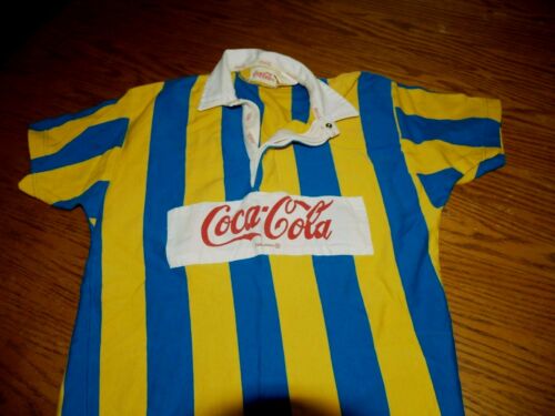 Title (ebay affiliate link): Vintage 80s Coca Cola YELLOW/White/Blue Rugby Polo Shirt Mens MEDIUM Colorblok