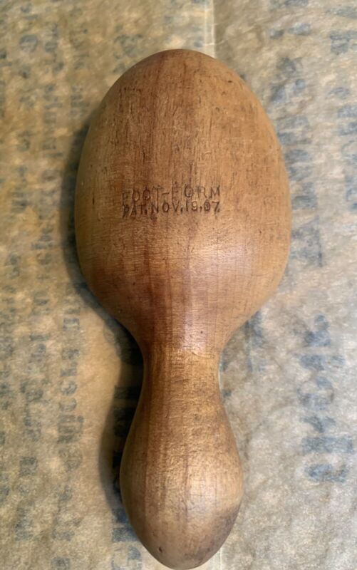 Title (ebay affiliate link): Antique Wooden Sock Darner Marked Foot Form Dated 1907