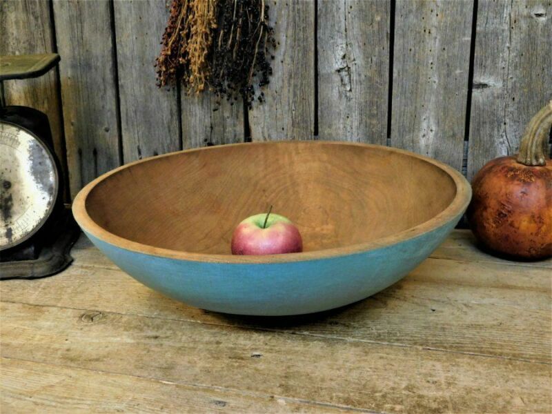 Title (ebay affiliate link): Antique Primitive Vintage Blue Wooden Dough Bowl 14 1/2"