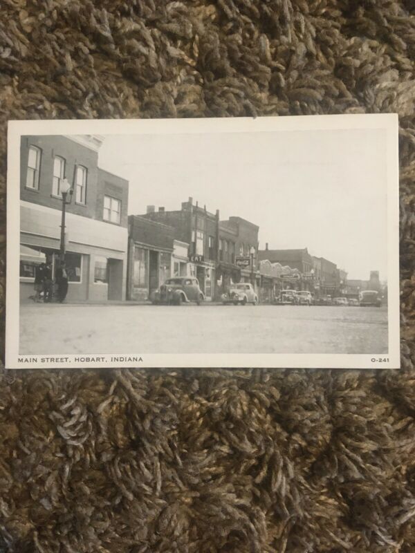 Postcard View Main Street Scene Business District Hobart Indiana Coca Cola