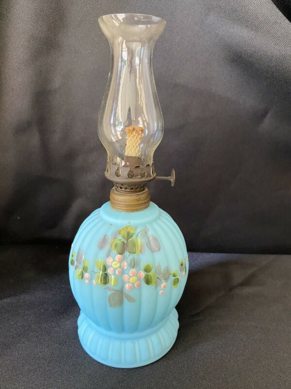 Title (ebay affiliate link): Vintage Beautiful Floral Milk Glass Mini Oil Lamp From A Collection