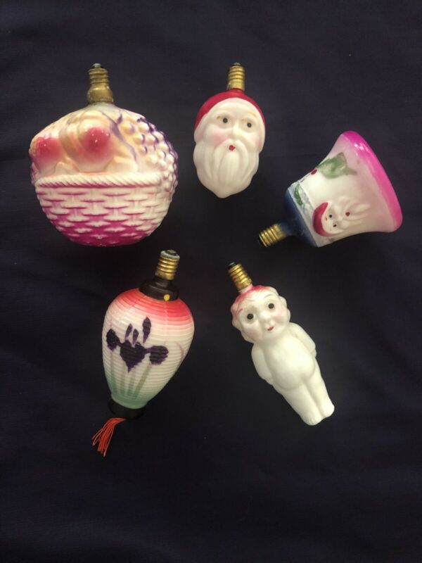 Title (ebay affiliate link): LOT Of 5 Vintage Milk Glass C6 Figural Christmas Bulbs - Nonworking